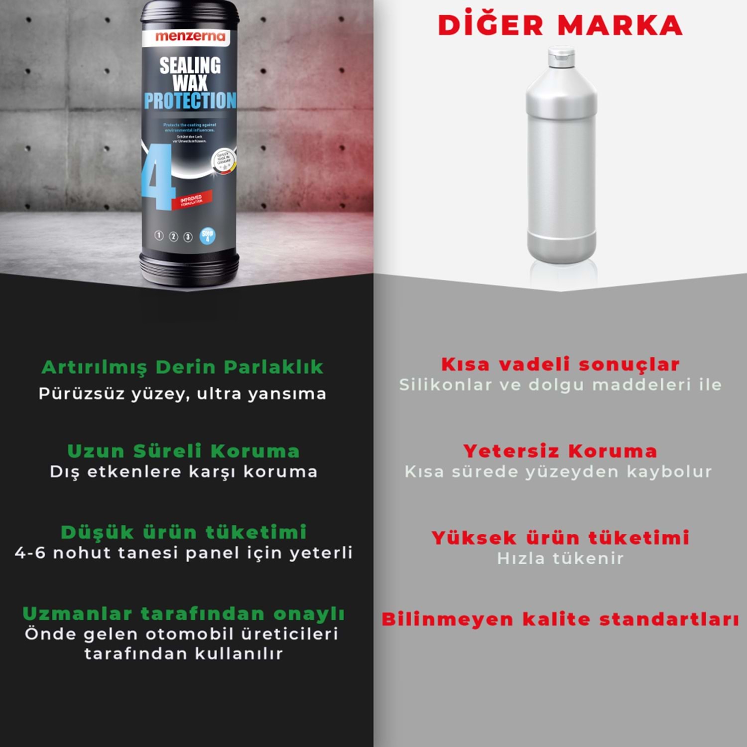 • Daha Hızlı ve Hepsi Bir Arada Çözüm: Menzerna 3in1 Eğer aracınızda hafif çizikler varsa ve tek bir adımda hem düzeltme yapmak hem de koruma sağlamak istiyorsanız, Menzerna 3in1 daha zaman tasarruflu bir alternatiftir. Ancak koruma katmanı, adanmış bir sealant kadar uzun ömürlü olmayacaktır.