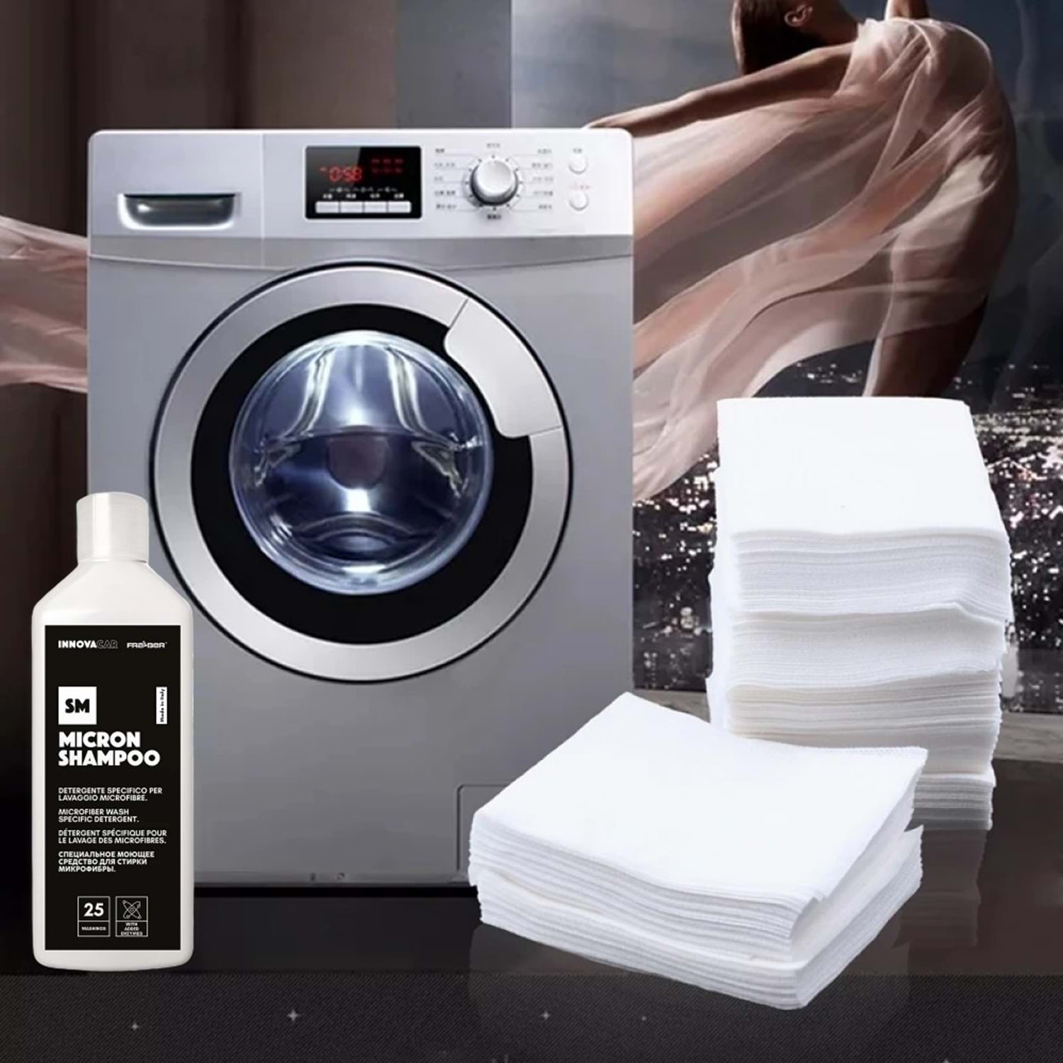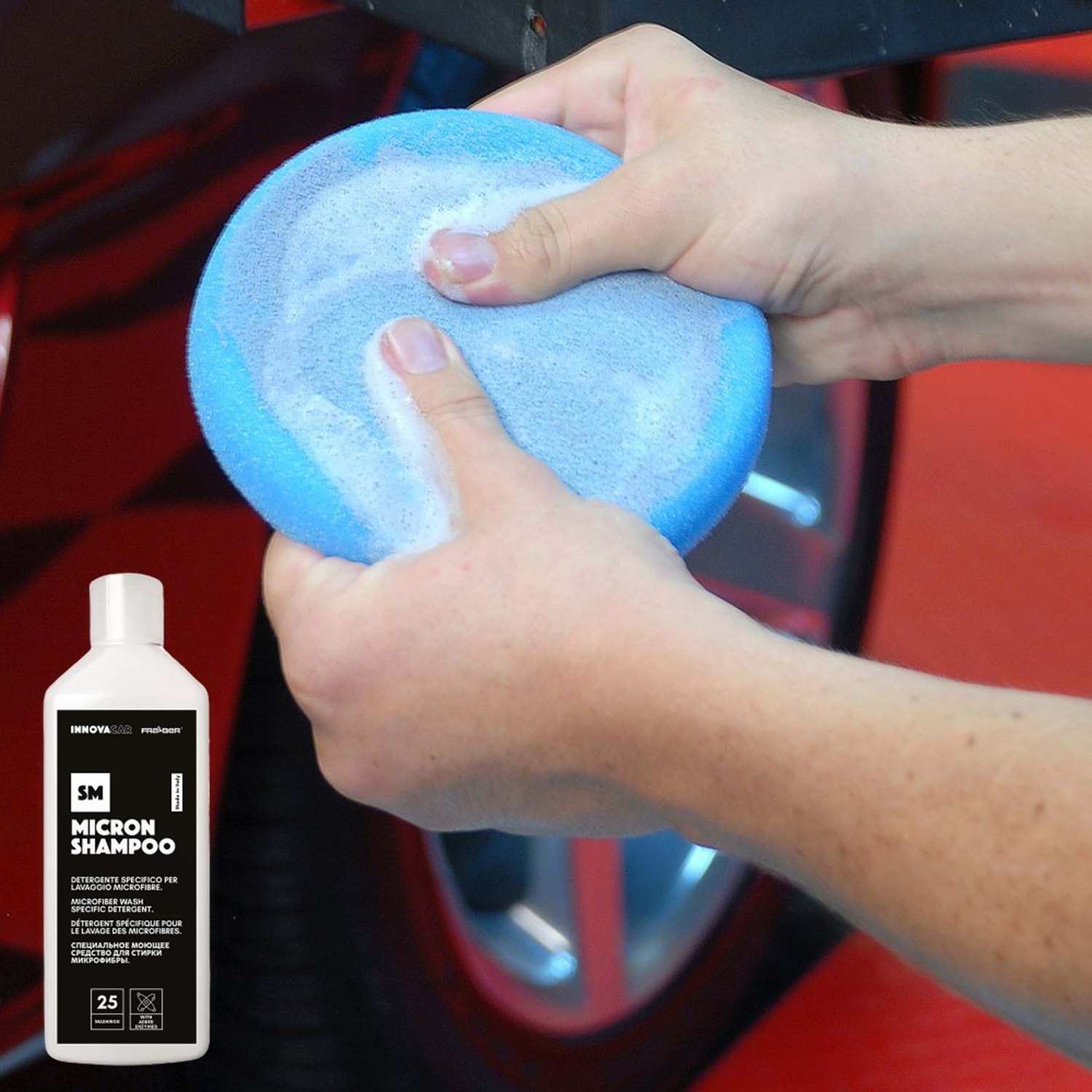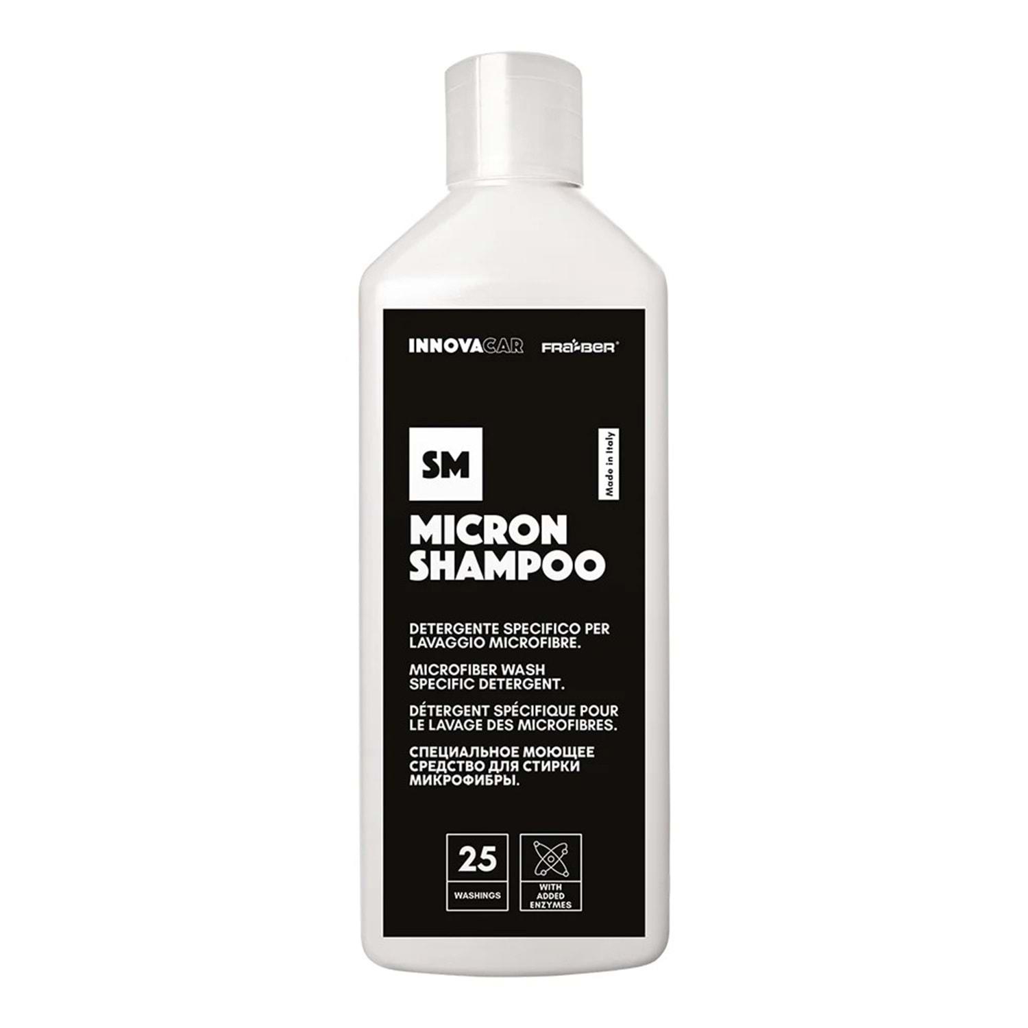 Innovacar SM Micron Shampoo, mikrofiber bezler, kurutma havluları, polisaj süngerleri, keçeler, koltuk ve araç örtüleri gibi detay ekipmanlarının temizlik ve bakımı için özel olarak geliştirilmiş, enzim bazlı, yıkama dostu bir deterjandır. Hem makinede hem de elde yıkama için uygundur ve profesyonel kullanım için idealdir.