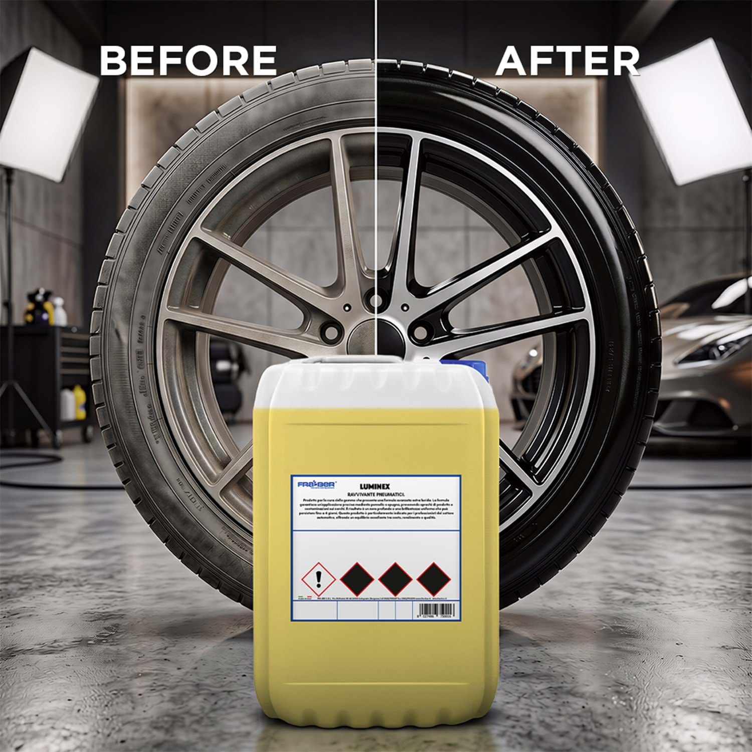 Aracınızın temizliğini tamamlayan en önemli detay, derin siyah ve parlak lastiklerdir. İtalyan Fra-Ber kalitesiyle üretilen Luminex, sıradan lastik parlatıcıların aksine lastiğinize sadece geçici bir parlaklık vermekle kalmaz, kauçuğu besleyerek ömrünü uzatır ve dış etkenlere karşı korur.