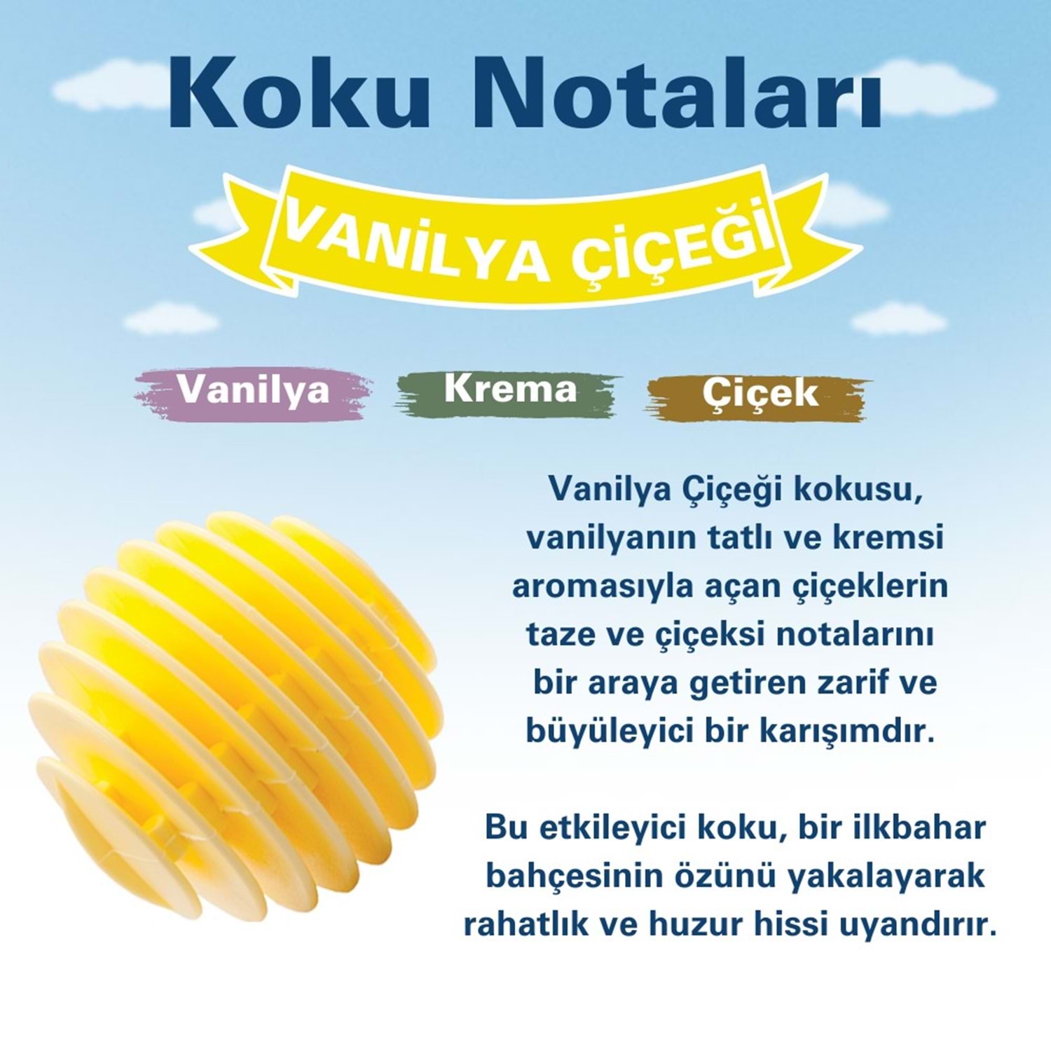 Vanilya esansı, yalnızca çamaşırlarınızı kokulandırmakla kalmaz; ruh halinizi de pozitif etkileyen huzurlu ve kremsi bir konfor sağlar. Çamaşırlarınızı her giydiğinizde, bahar çiçekleriyle sarılmış tatlı vanilyanın büyüleyici etkisini üzerinizde hissedersiniz.